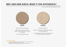 • Material options: Baltic birch plywood or MDF (Medium-density fibreboard)